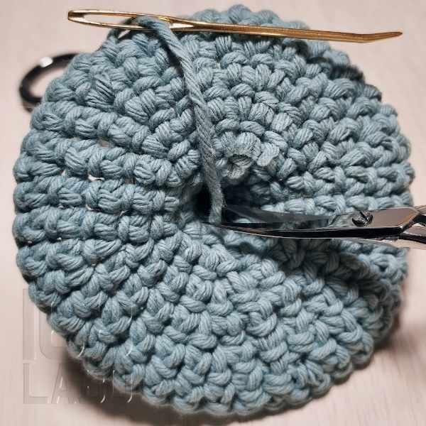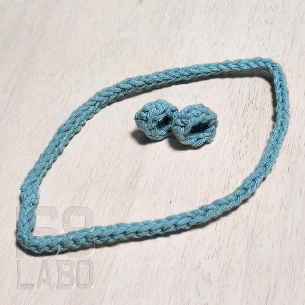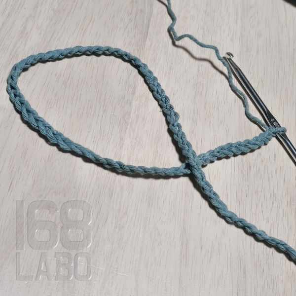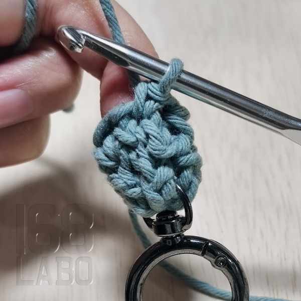 細編みでストラップをつくる際は、鎖編みの段階で輪にせずに、一旦細編みで折り返してから繋ぐほうが綺麗です。